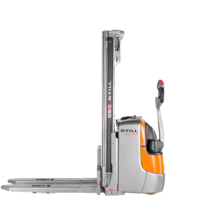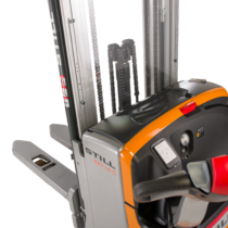 Med EXV 12 kan föraren känna sig trygg. Den automatiska hastighetsregleringen anpassas beroende på avståndet mellan föraren och ledstaplaren. Föraren har alltid fri sikt över gods och gafflar tack vare den breda triplex-masten. När man arbetar på ramper bromsas den elektriska ledstaplaren automatiskt in om föraren släpper styrhandtaget. Den vinklade styrhandtaget ser även till att föraren inte blir klämd när man arbetar på trånga ytor. Letar du efter en annan elektrisk höglyftande ledstaplare som håller hög kvalitet? Kolla in: EXV-SF-14.
